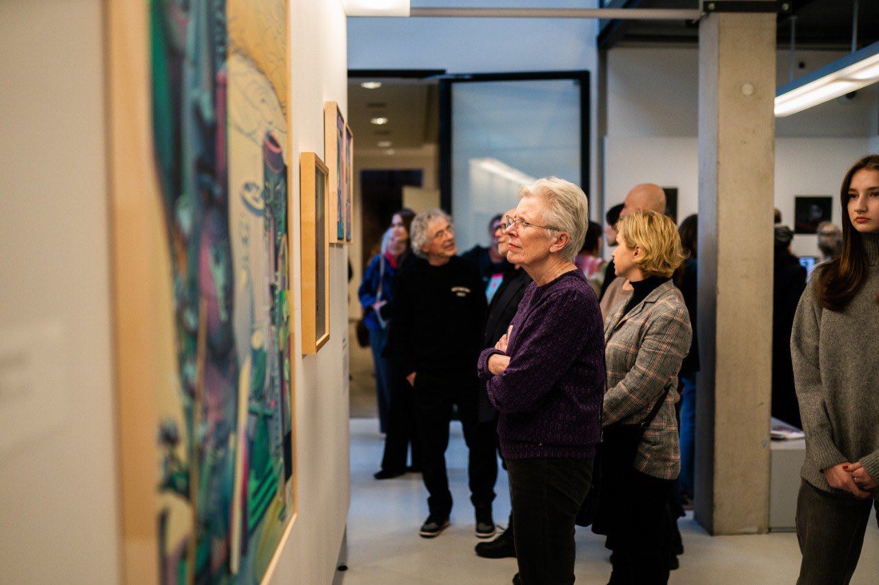 The exhibition showcased 39 works of painting and graphics, sculptures, and video art by seven Ukrainian artists: Mira Bachkur, Serhii Dekaliuk, Vitalii Hrekha, Vova Keno, Iryna Maksymova, NOTUKO, and Volodymyr Semkiv.